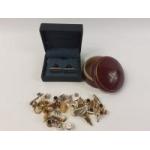 A nice little collection of base metal Gentlemens dress cufflinks and studs. One boxed set, others loose in a box.