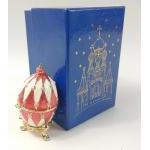 THE GIFT OF THE CZARS! A SUPER QUALITY FABERGE INSPIRED small decorative egg on a stand - the egg is hinged and half opens-up to reveal a highly polished gold painted interior for your special keepsakes! - dimensions when sitting on the stand height 7.5cm - when off the stand 6.5cm x width 4cm approx - comes in its authentic Russian styled Royal Blue box - a perfect gift for your loved one !