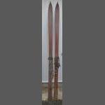 A pair of vintage wooden skis with leather bindings made by GRESVIG of Oslo approx 200cm long