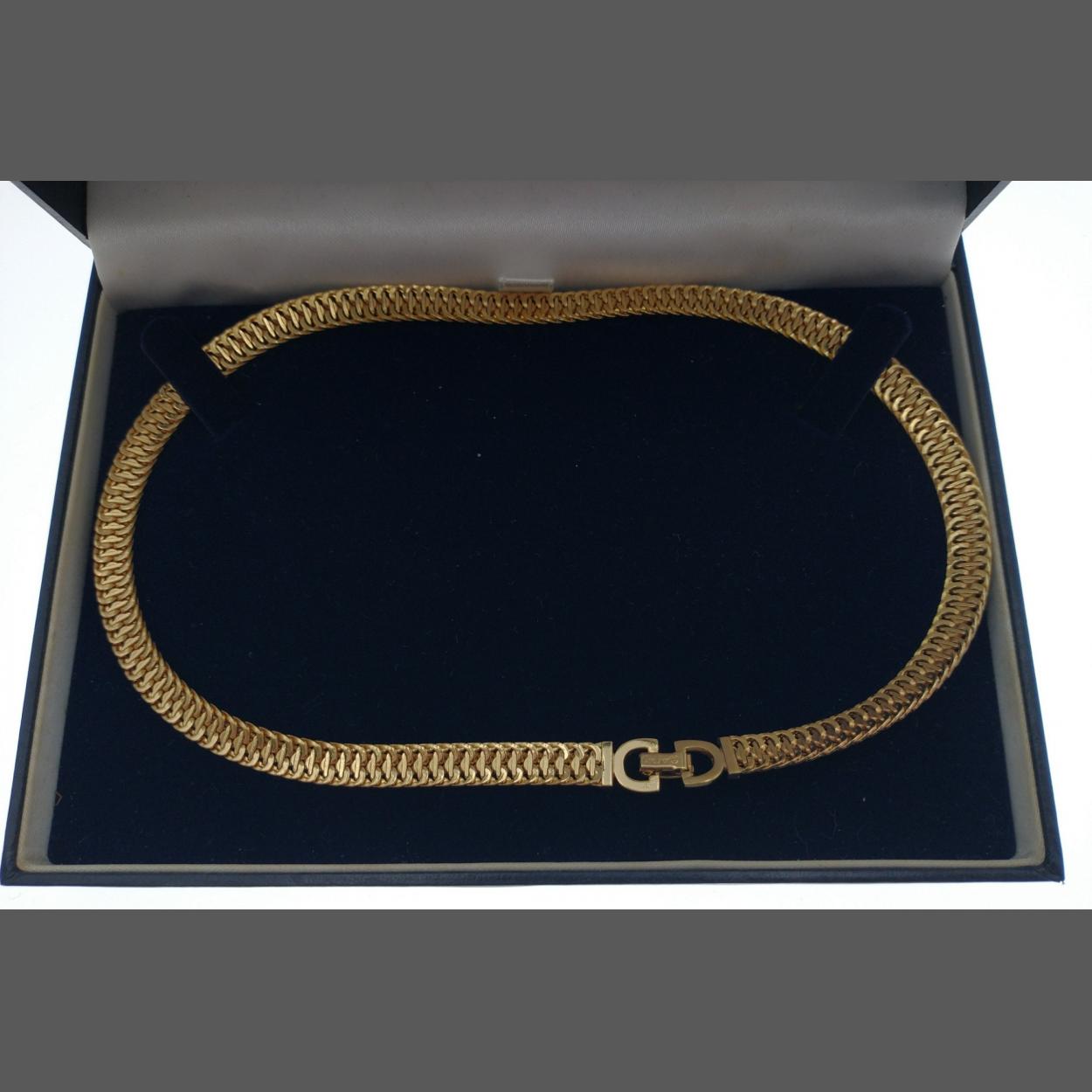 Look like a Million Dollars with this CHRISTIAN DIOR gold tone gilt metal flat link chain in unbranded box. Chain length 38cm and in good condition.
