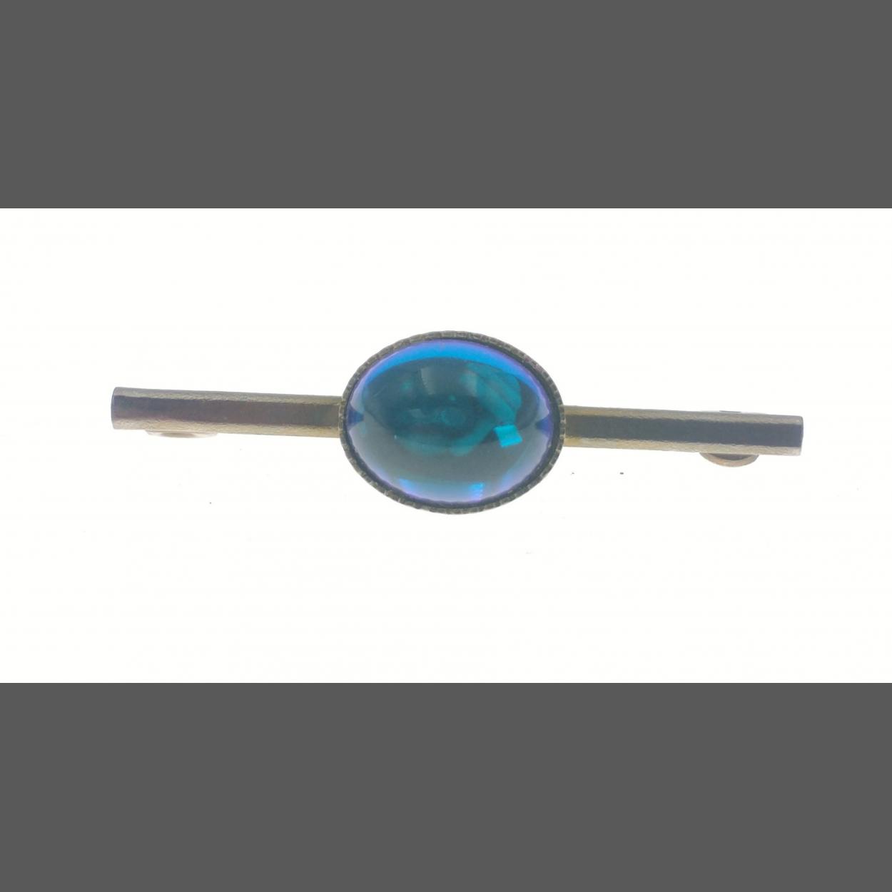 I just couldn't resist listing this on its own! VINTAGE! A PRETTY (stamp/mark indistinct) yellow metal bar brooch with a STUNNING blue/purple-ish oval-shaped stone which changes colour when moved around! Dimensions 3.5cm length approx weight gross 1.64g approx