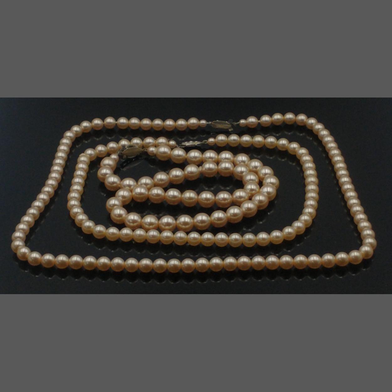 THREE NICE PEARL necklaces - one string 46cm length and the other 60cm in length and lastly 40cm in length