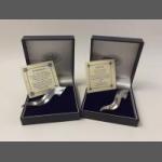 SCOTTISH PEWTERMILL CRAFTS Pewter brooches in boxes. Both in the style of Celtic Interlaced waving Saltire flags. Very attractive solid well made and attractive pieces