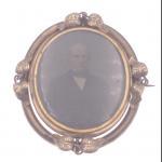 A HIGH QUALITY VICTORIAN large oval Pinchbeck memento mori mourning brooch with a large portrait of a gentleman - verso a collection of hair mementos which are exquisitely displayed - dimensions 7cm height x 6cm width approx weight gross 33.16g approx