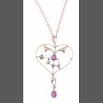 A beautiful unmarked yellow metal heart-shaped pendant with small amethyst-style stones with a 375 stamped gold necklace 2.63g approx- gross weight for both 4.29g approx