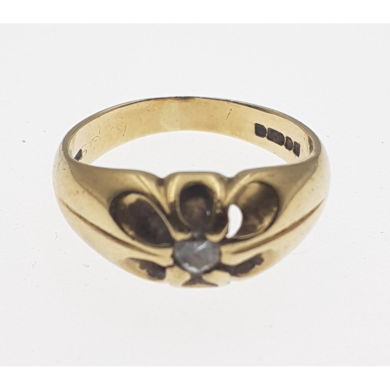An 18ct fully hallmarked ring with solitaire diamond (tested) size M, gross weight 4.0g approx
