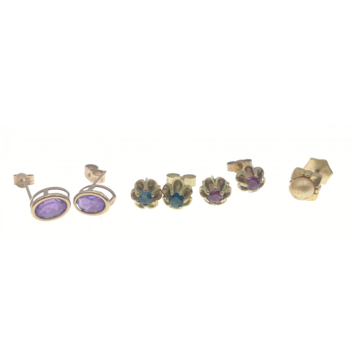 Collection of gem set earrings. Some marked 375. Marked weighs 3g approx, overall weight: 4.3g approx