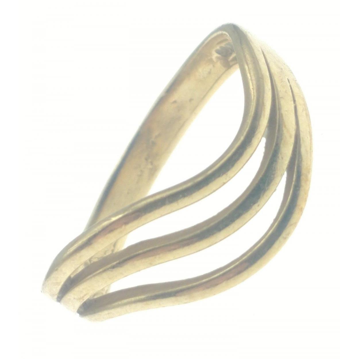 Hallmarked 9ct yellow gold wishbone style ring. Size O and weighs 2.1g approx