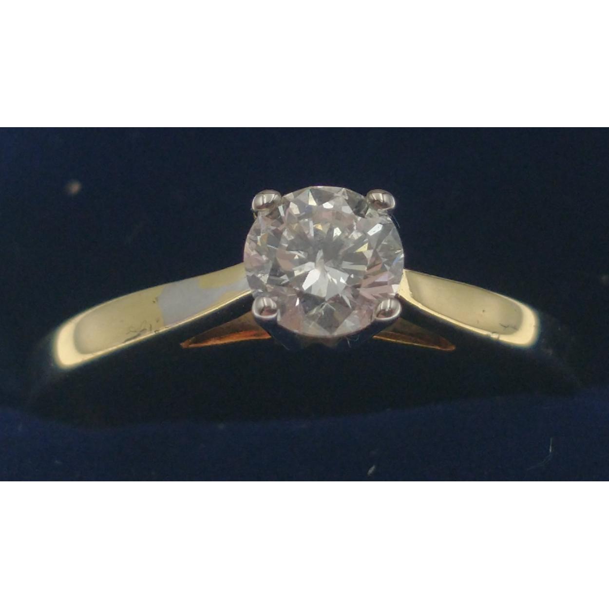 A lovely 750 stamped 18ct gold ring with lovely centre diamond (tested) 5mm approx (0.5 carat approx). Size O Gross weight 2.95g approx