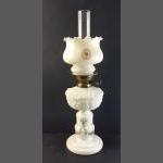 ANTIQUE - Opaque white glass oil lamp, with opaline glass shade and chimney. Height including shade: 55cm. Burner marked Young's Screw No 1