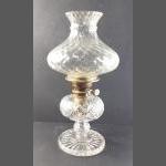 BEAUTIFUL! Squat cut glass oil lamp with shade, unbranded. Height with shade: 45cm approx