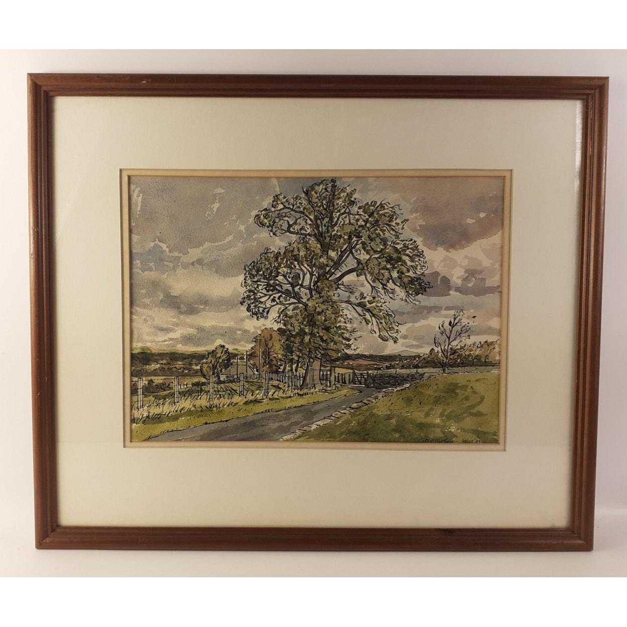 ORIGINAL WATERCOLOUR by DAVID OLIVER WILLIAMS of a countryside scene, frame 24 x 18cm.