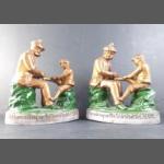 A pair of ceramic figurines of "Ye Maunna Tramp on the Scotch Thistle Laddie" each standing 23cm high with a stamp 2423 on rear. There are some chips from the paintwork and 1 small chip from 1 foot but generally good condition for their age