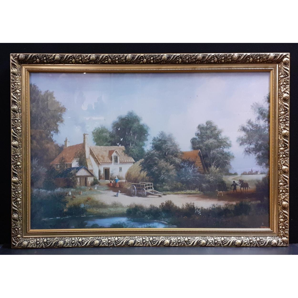 A large print of an idyllic country cottage scene, frame measures 99x69cm approx
