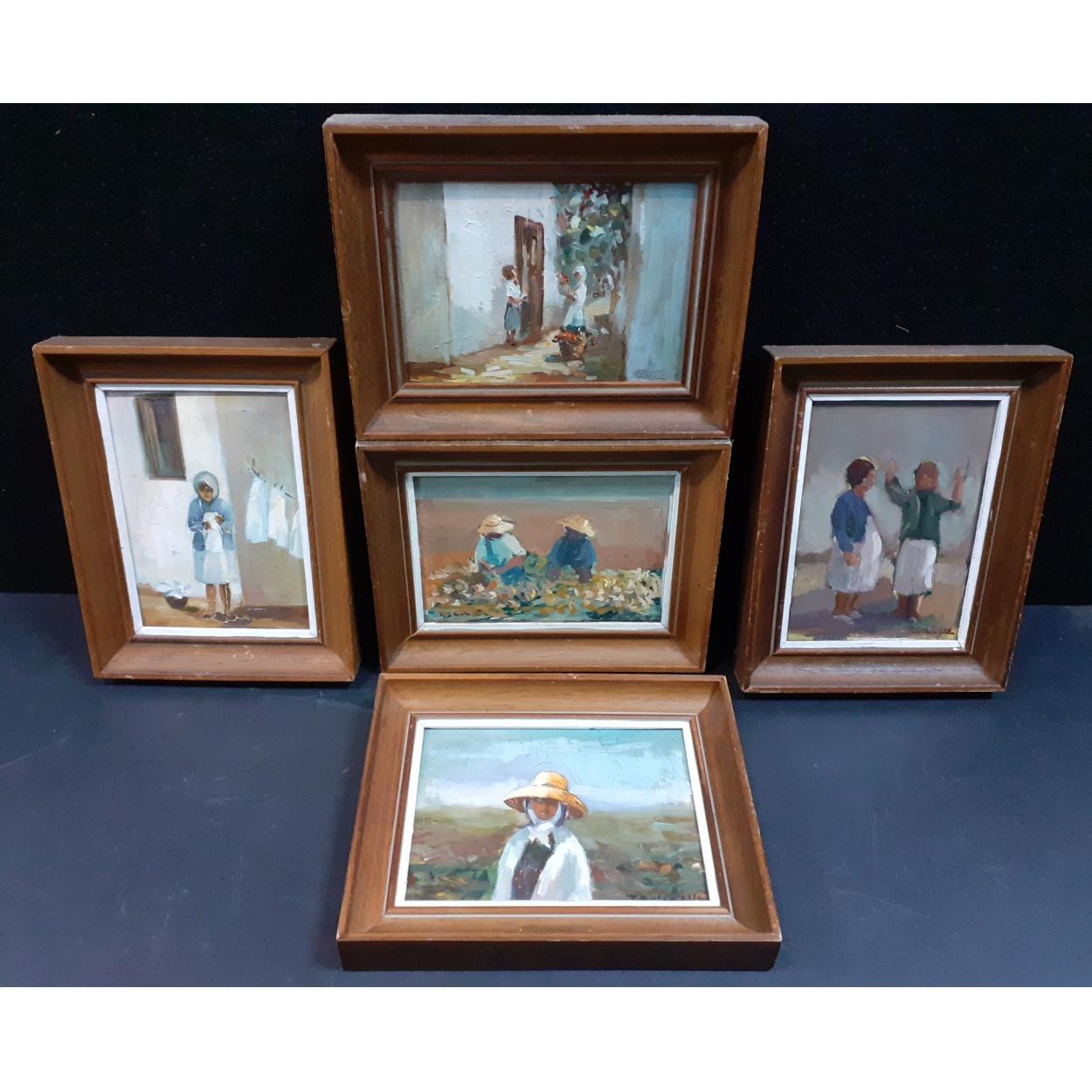 Five small oil on canvas paintings by T GALLAN frame size each 27x21cm all of Tenerife