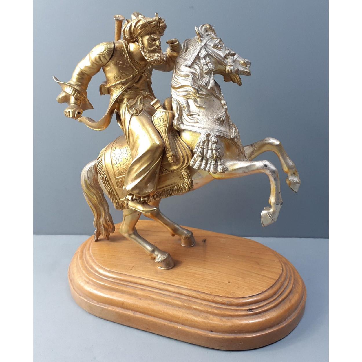 An ANTIQUE heavy cast metal French School late c19th century Arab on a rearing horse - superb detail - missing his sword in both hands, otherwise in very good condition. - dimensions 11" tall x 9.5" length approx