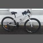 A TIGER branded unisex 27.5" frame mountain bike with front suspension and front and rear disc brakes, with handle-bar bag!