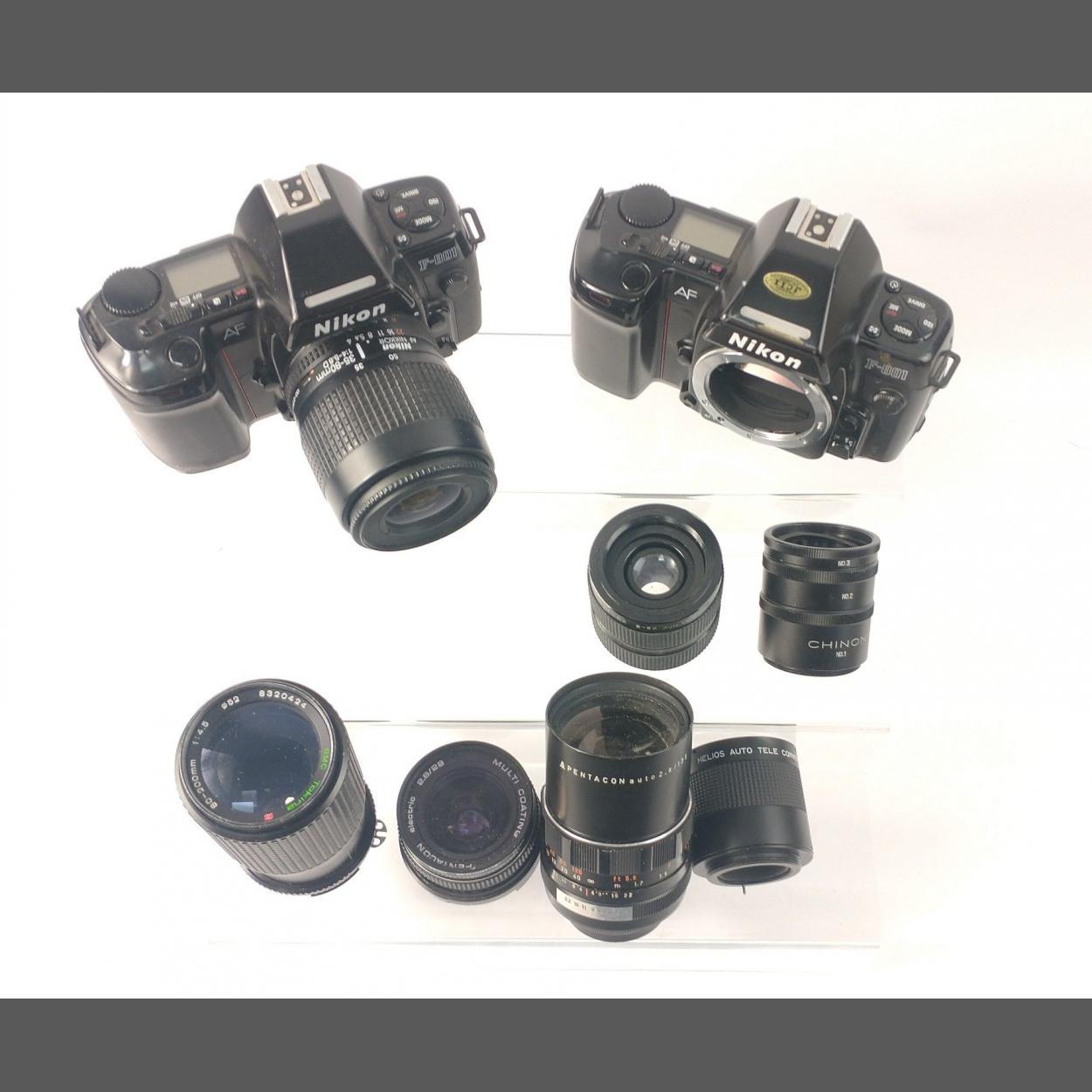 A super lot of collectible photographic items to include 2 NIKON AF F-801 camera bodies. Includes 5 lenses - a NIKKOR 35-80mm, a RMC TOKINA 80-200mm, a PENTACON AUTO 2.8-135, a PENTACON electric 2.8 and a number of tele converters