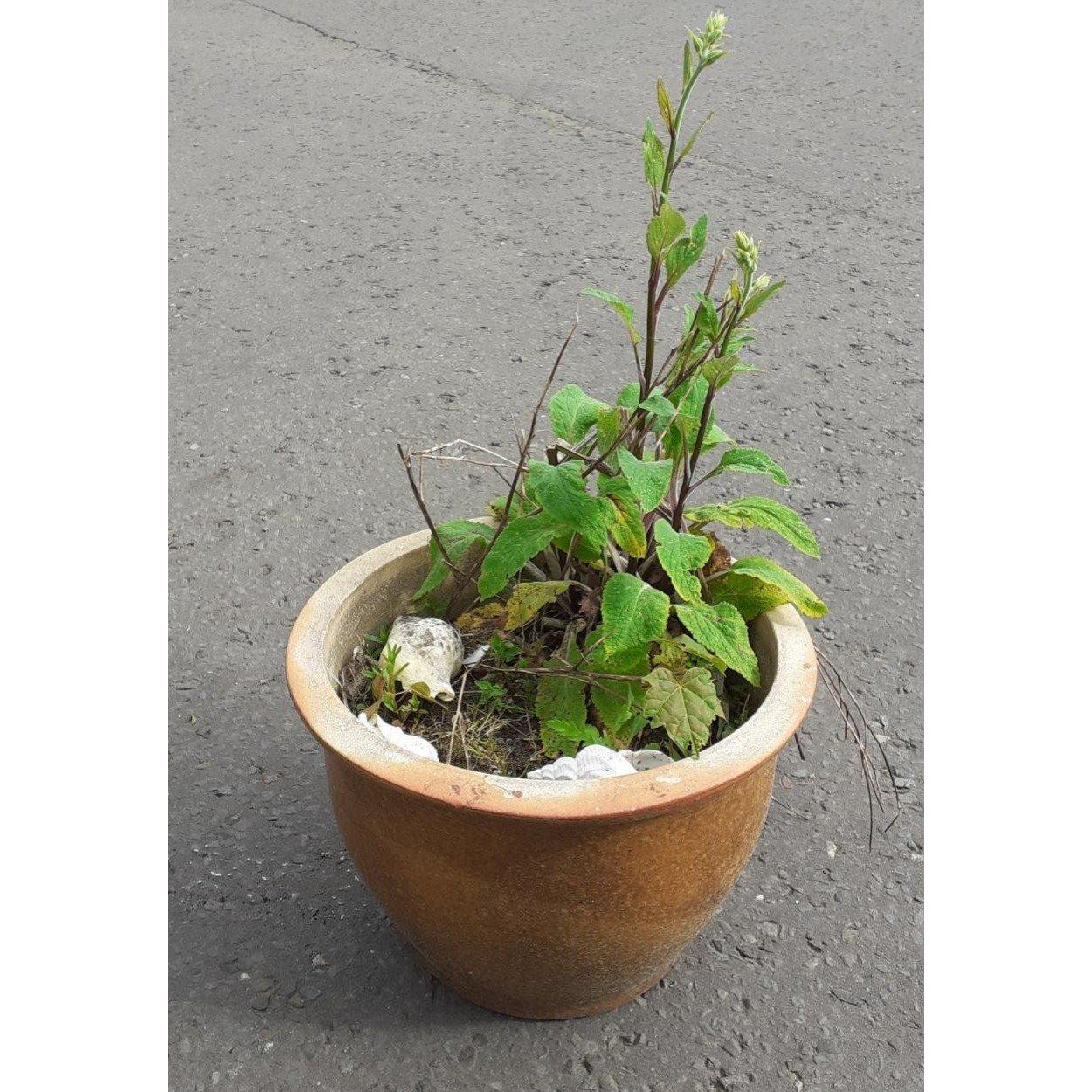 A ceramic garden planter with planting and sea shells included - diameter 30cm approx