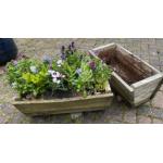 Two useful wooden garden planters, one with plants. Each 60cm approx and in good order.