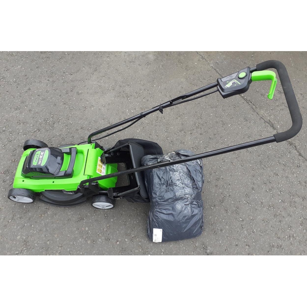As new condition 24volt battery lawnmower with two collection baskets (one new spare unopened) - 33cm cut - what a great wee lawnmower!