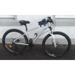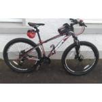 A TIGER branded unisex 27.5" frame mountain bike with front suspension and front and rear disc brakes, with handle-bar bag!