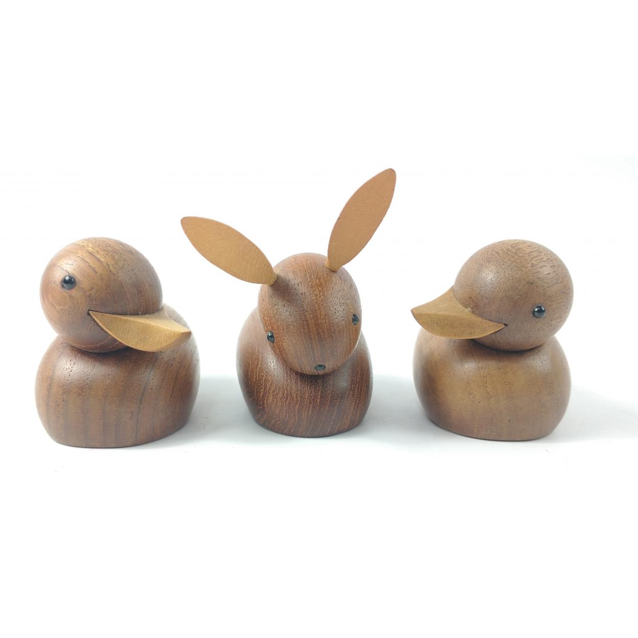 Two mid century teak SKJOØE of Denmark ducks approx 8cm long and 1 rabbit