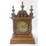 A very nice wooden German mantle clock in good condition. Mechanism stamped The St James Clock Company, made in West Germany. Appears to be in good working order. Key in rear case.