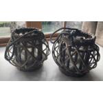 A pair of fashion basket candle holders with glass candle holder inserts - dimensions each 18cm tall x 14cm diameter approx