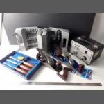 A box of useful tools to include a part set of Marples Chisels, A RECORD and a STANLEY Plane, a boxed electric screwdriver and a FORT 150S Tester base only.