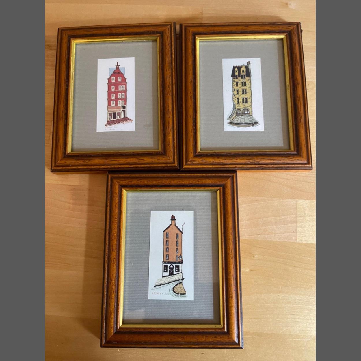 A selection of pictures including antique engraved images by BARRANCE, a 1980s frame photo, some Oriental prints and a WILCOX framed watercolour of Old St Ives in Cornwall