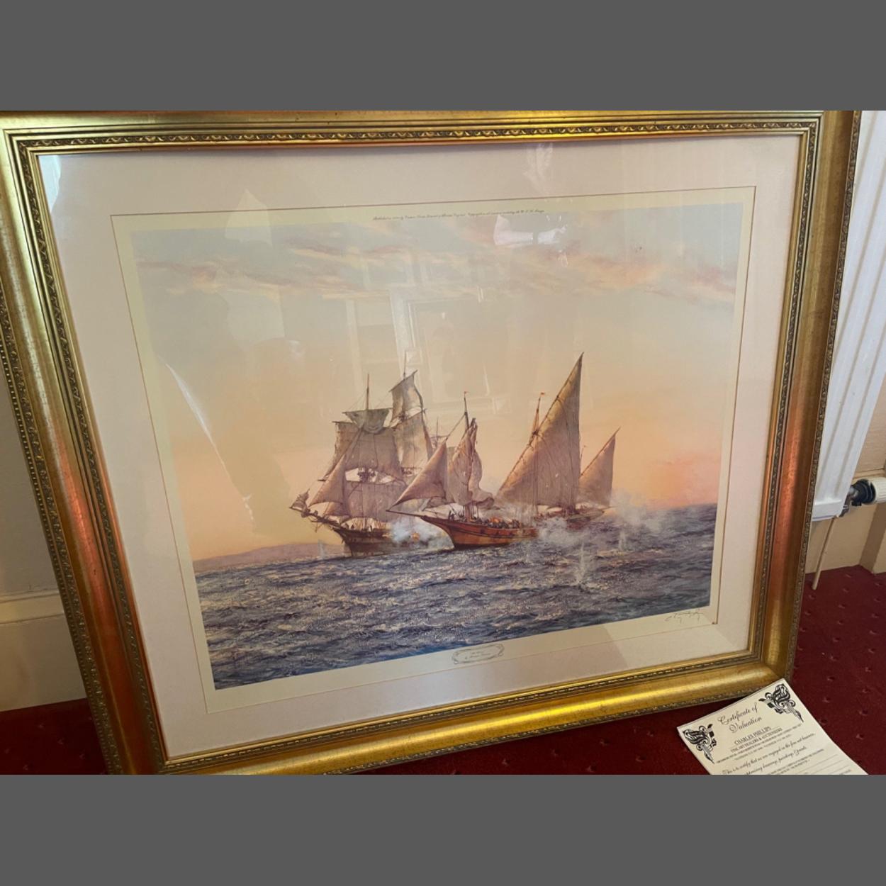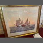 A maritime print called "The Windsor Castle", limited UK edition 140/200, by MONTAGUE DAWSON 102cm x 90cm, visible work 76cm x 61cm approx. Published in 1974 by Venture Prints Ltd of Bristol, England