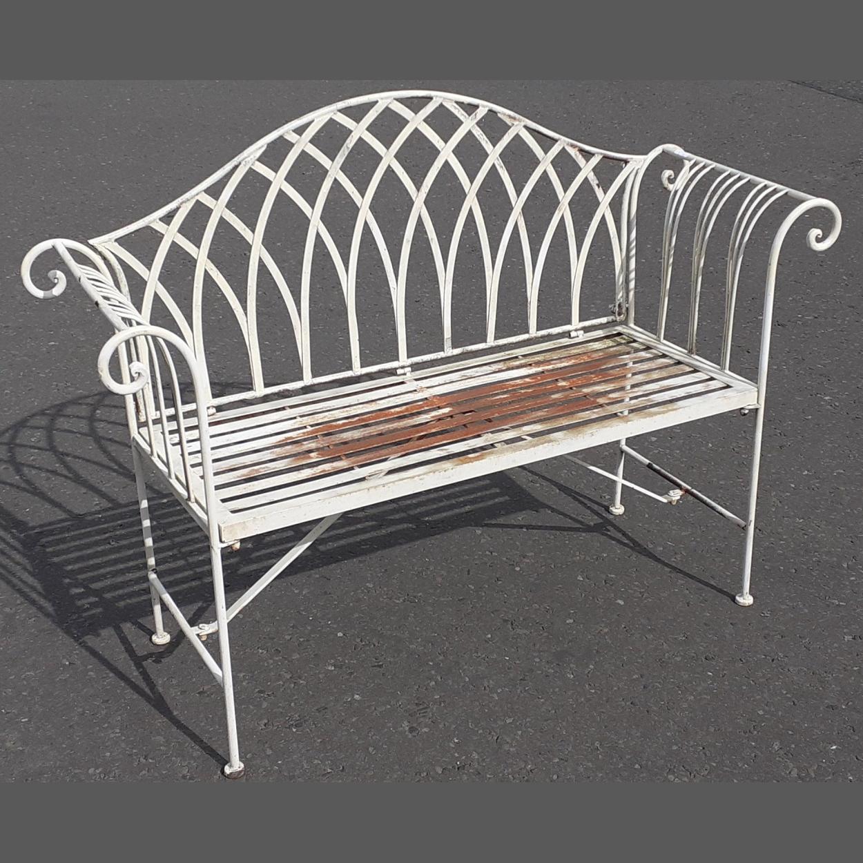 ROBUST iron Garden / Conservatory seat! A rustic white painted metal garden bench in lovely worn condition. Looks great as it is or ready for painting. Dimensions are Height 93cm, Width 124cm, Depth 46cm