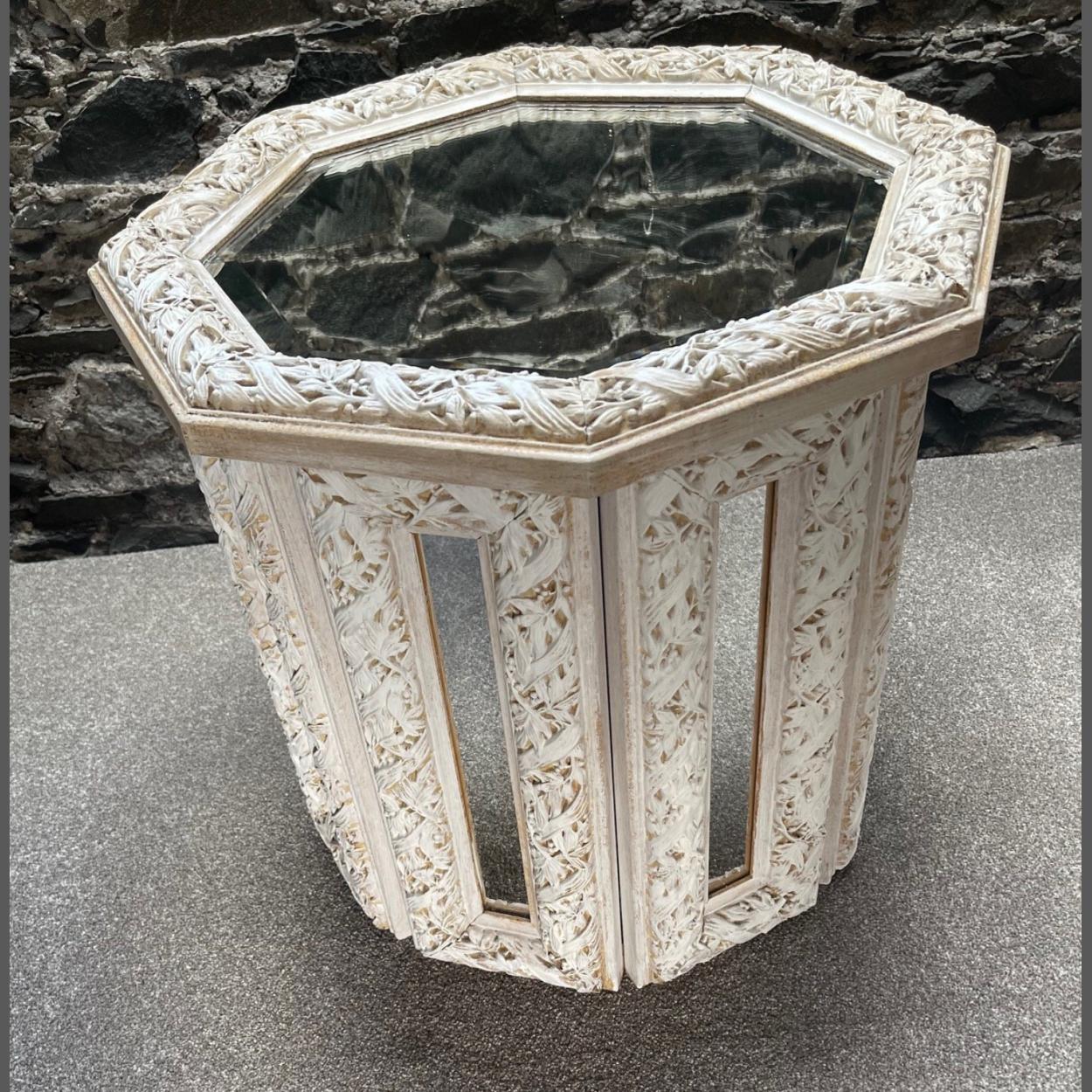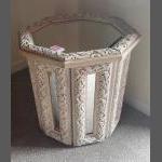 A pleasant metal-work with glass top lounge or hall table - dimensions 3ft width x 10" depth approx
