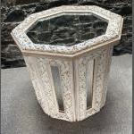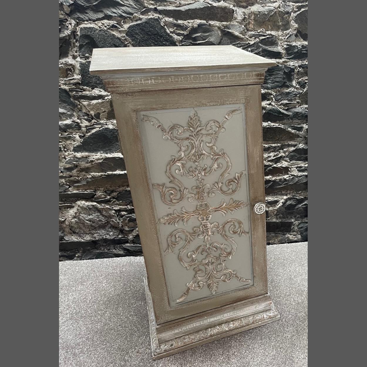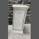 A stone-effect square pierced-look distress finish candle holder dimensions 30cm height x 14cm square base approx to include also a lovely BOTANIC CANDLE (10cm x 10cm approx)