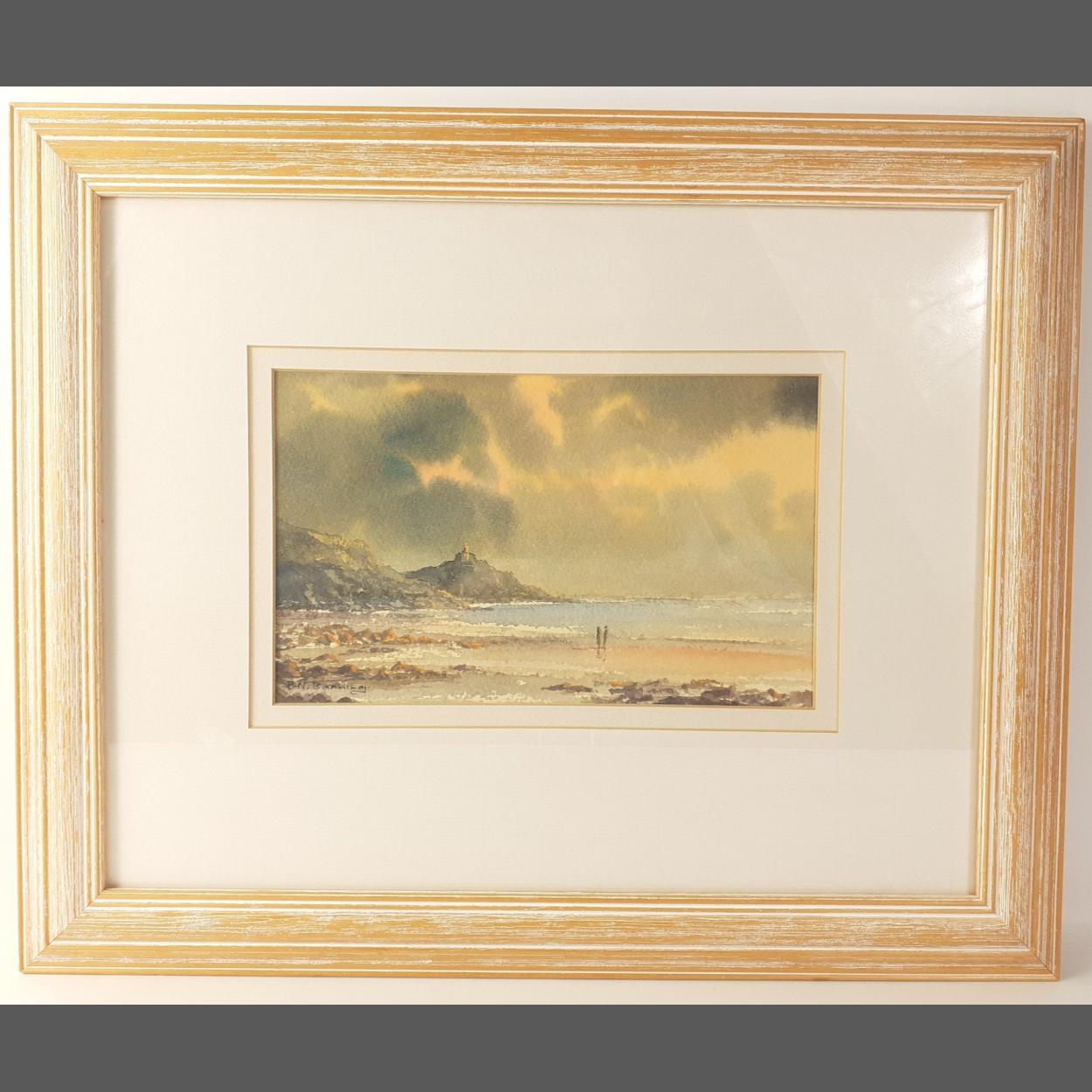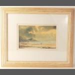 An original WATERCOLOUR PAINTING by R. N. BANNING of an atmospheric coastal scene. Frame measures approx. 48cm in length x 39cm in height. Visible work measures approx. 24cm in length x 15cm in height.