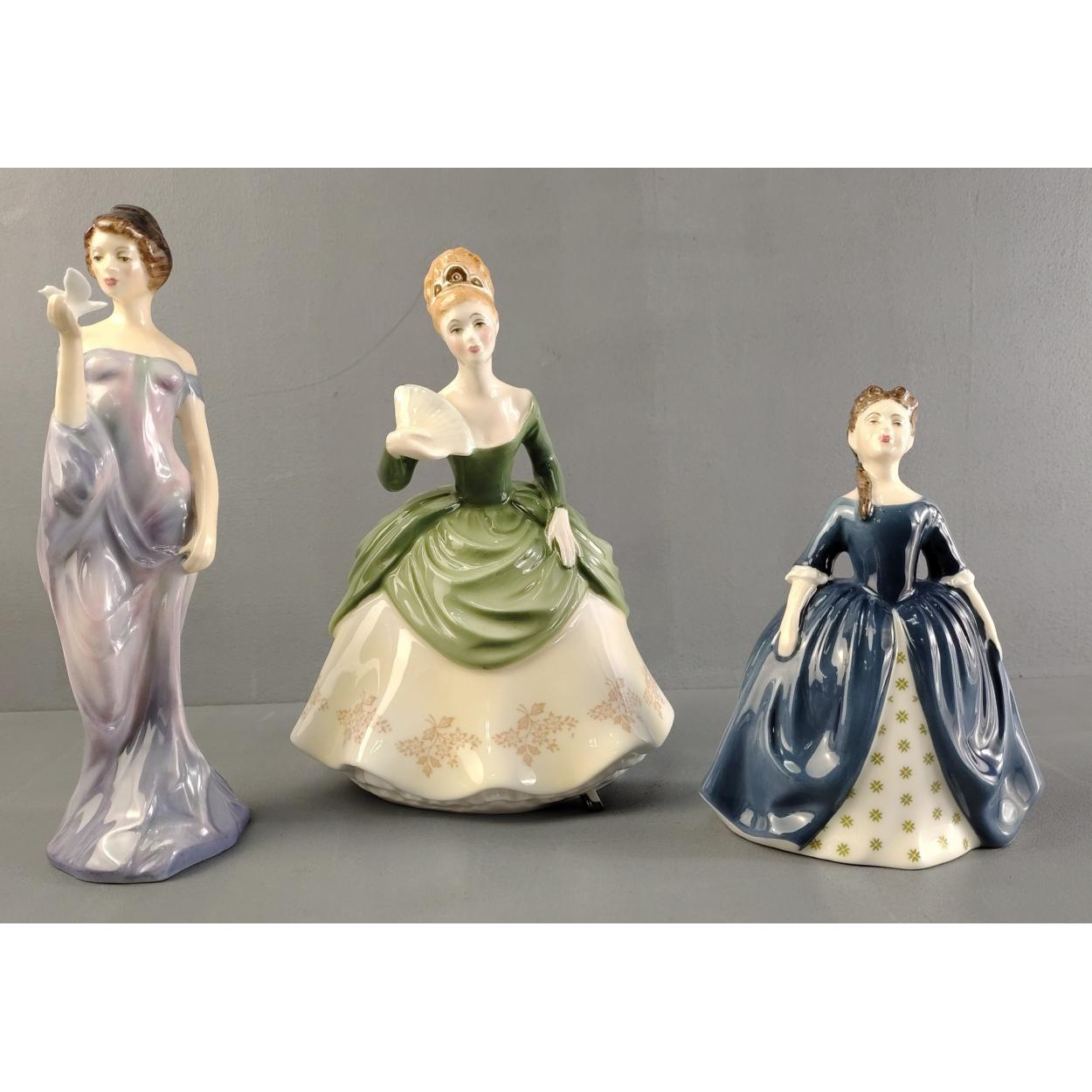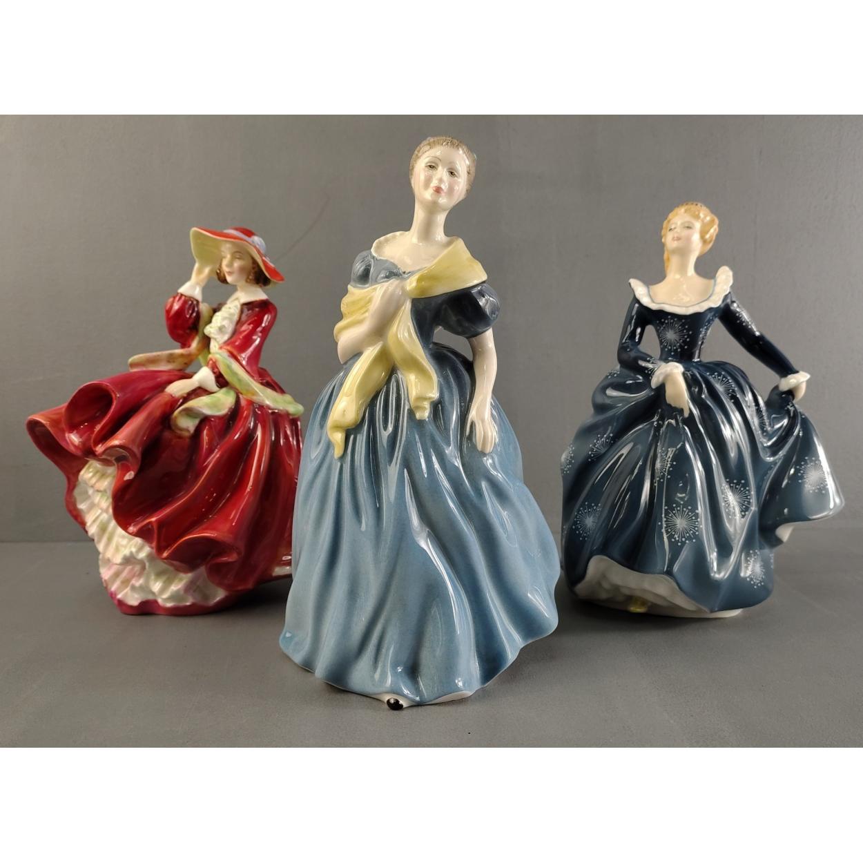 Three ROYAL DOULTON ladies to include Soiree (HN2312), Debbie (HN2385), Harmony (HN2824). Tallest stands approx 22cm