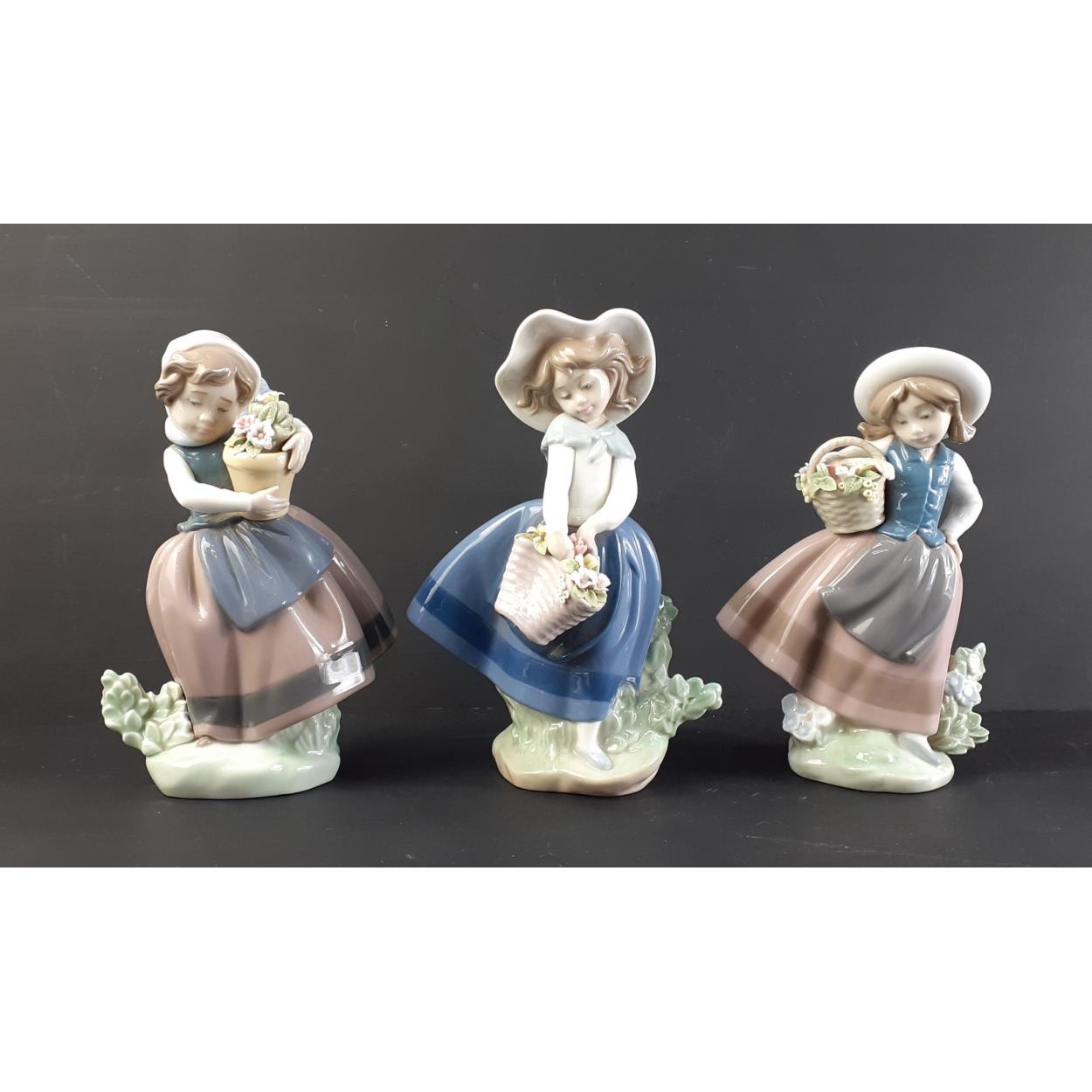 Three LLADRO figures of pretty girls, all in good condition. 18cm tall approx.