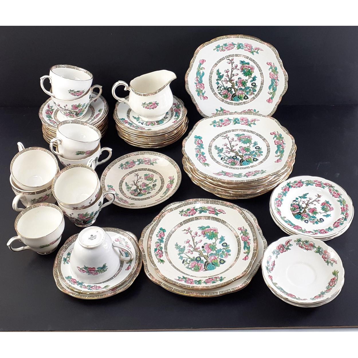Duchess INDIAN TREE part tea service in good condition consisting of nine plates x 23cm, twelve side plates, ten cups, twelve saucers, milk jug and others.
