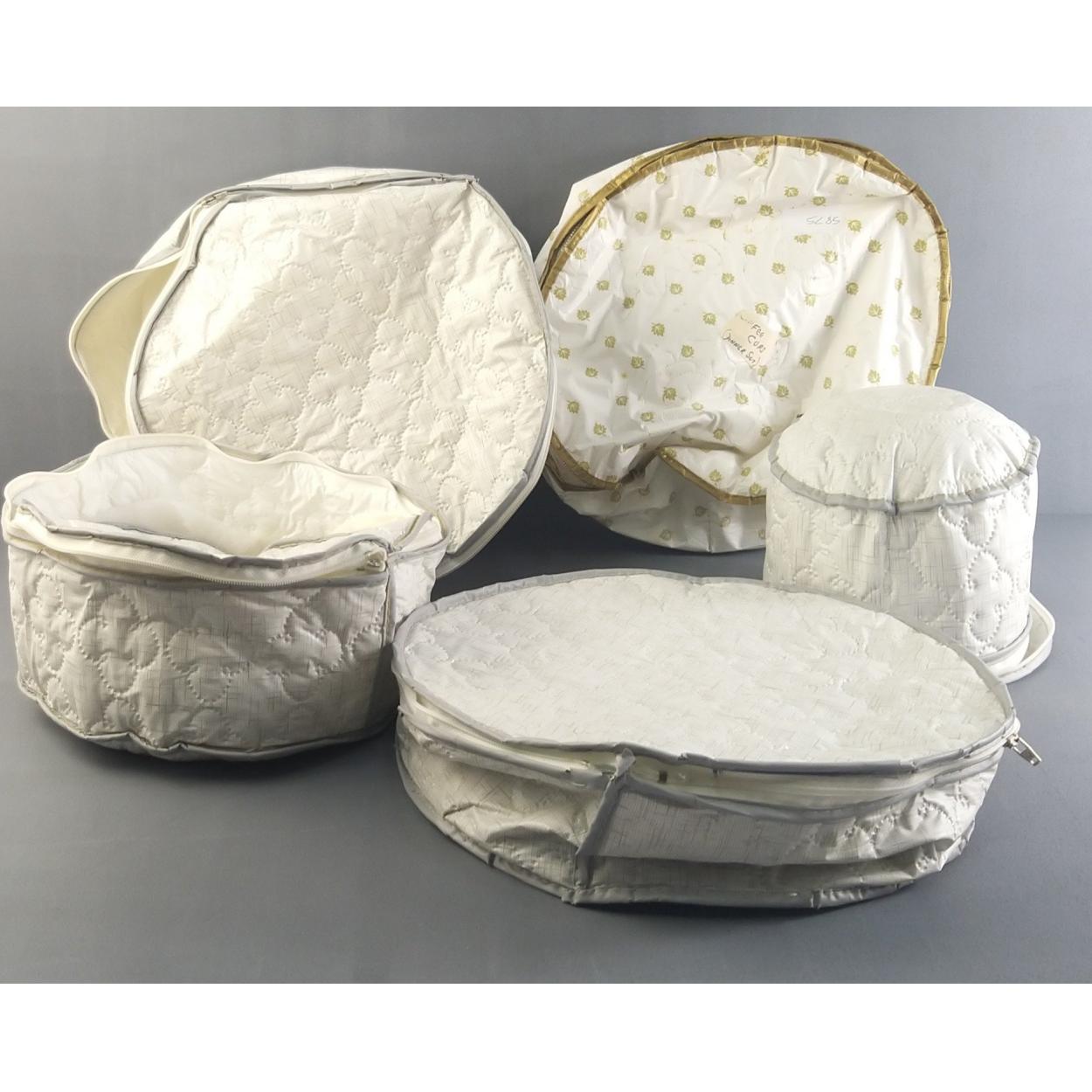 Protect your precious dinner service with these zipped padded plate storers with dividers for dinner plates, salad plates, saucers, and cups. Five pieces in total.