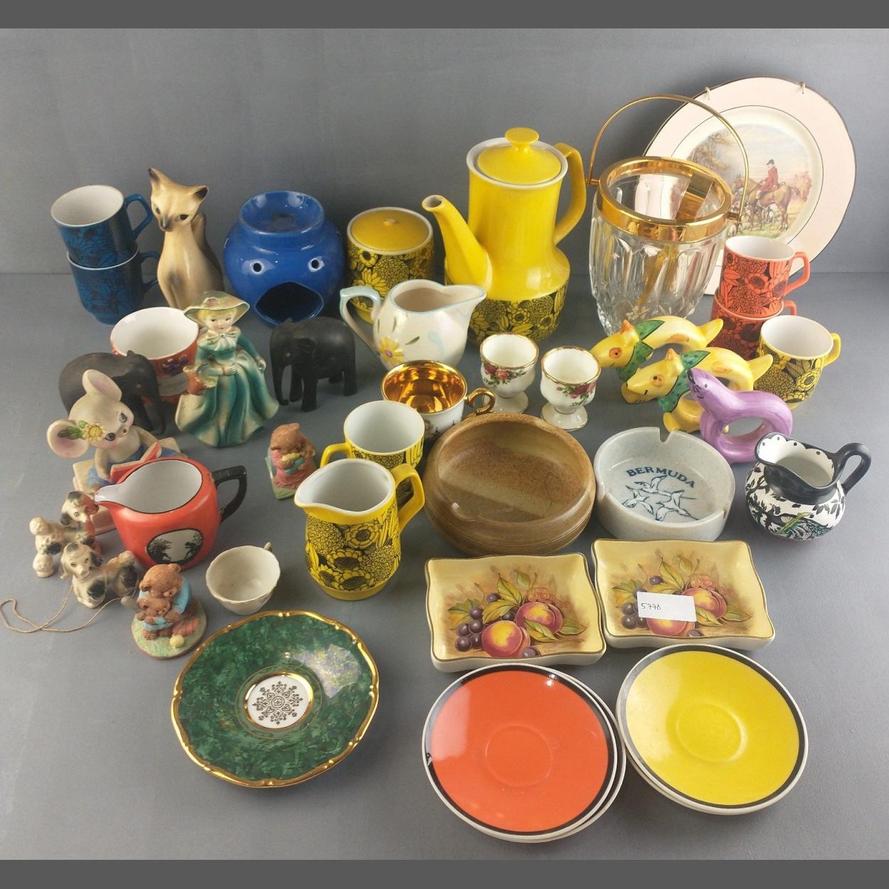 A mixed lot of decorative ceramics to include ornaments, ice bucket, novelty napkin holders, etc