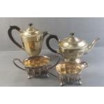 A silver plated tea/coffee service comprising teapot, coffee pot, milk and sugar