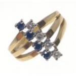 A fully UK hallmarked 18ct gold ring by S&D, stamped Starlight (Singapore), with 4 offset sapphires and diamonds (3mm), size P, gross weight 6.45g approx