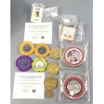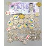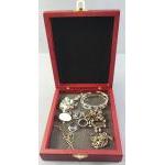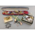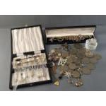 A small VINTAGE mixed bijouterie lot comprising cased plated spoons, modern coinage jewellery and charms