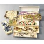 A selection of vintage and modern jewellery to include very attractive necklaces and earrings, beads, polished stone necklace, gilt pieces. LOADS OF BLING!