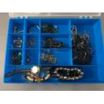 A clear lidded jewellery box with 11 divisions and contents of costume jewellery.