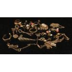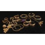A small quantity of 9ct / 375 marked jewellery pieces. Earrings, chains etc, minor stones, gross weight 21.5g approx