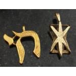 A 9ct stamped pendant on a 375 stamped chain with small central stone. Note chain is heavily knotted and tangled. Gross weight 2.6g approx. With one other broken yellow metal chain 0.5g approx