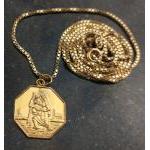 A 375 stamped chain 58cm long approx with St Christopher medallion (15mm approx) stamped 375. Weight 5.83g approx
