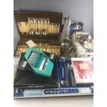 A two tier canteen of cutlery comprising a service for 12 with some pieces missing. Also includes a boxed set of 6 EPNS spoons and one box of 4 EPNS coffee spoons